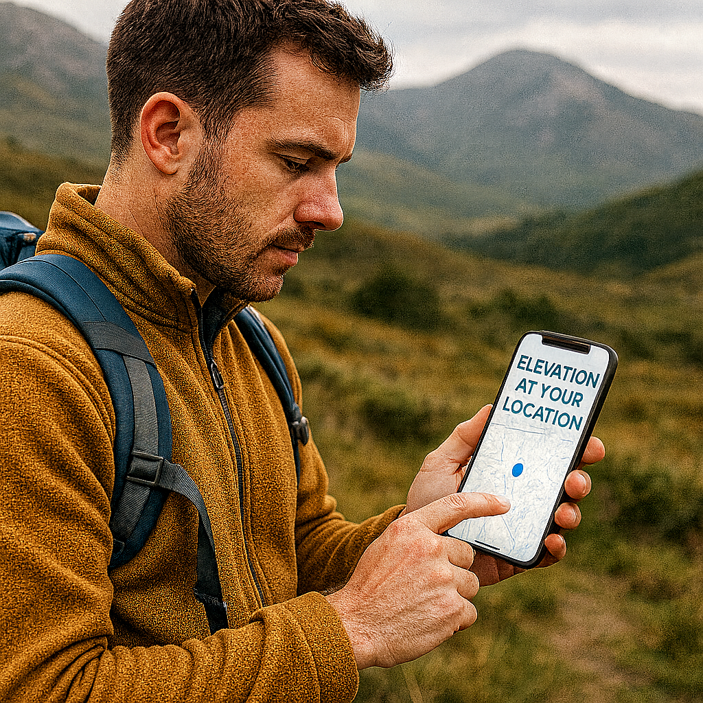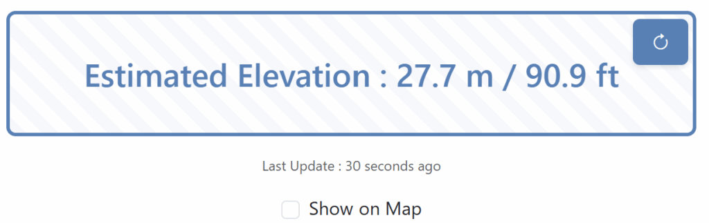 This tool can be used to find an estimate for the elevation of your current location. Perfect when out and about and you need a quick measurement of your current elevation.